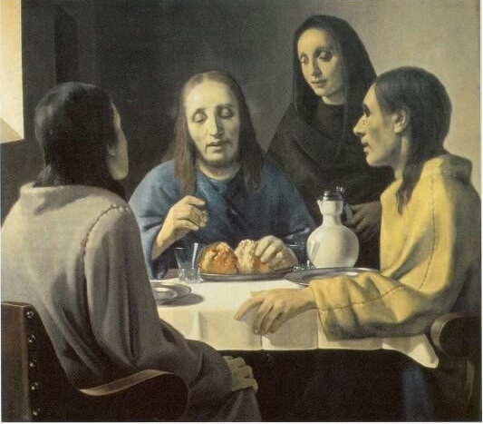 Работы Вермеера неоднократно пытались подделывать. Самым громким стал скандал, разразившийся в 30-х годах прошлого века, когда обнаружилось, что сразу несколько работ (одна из них — безусловно талантливая «Христос в Эммаусе») не принадлежат перу Вермеера, а написаны художником Хан ван Меегереном. К моменту разоблачения Меегерен сумел продать несколько работ на сумму около 30 миллионов долларов в перерасчёте на современный курс. При этом «подлинность» произведений признавали многие авторитетные искусствоведы и оценщики.